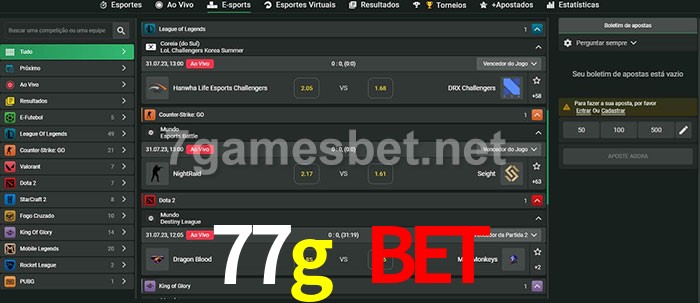 O 77g bet oferece uma grande seleção de opções de apostas em e-sports com probabilidades competitivas